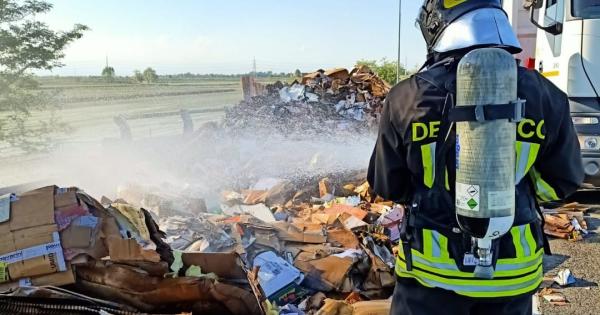 Poco dopo le ore 17,20 di oggi, giovedì 27 maggio, le squadre di Vigili del Fuoco del Comando di Vercelli sono intervenute sulla Sp 455 all'altezza dell'abitato di Desana, dove su un autocompattatore trasportante circa 40 quintali di cartone si è sviluppato un incendio.