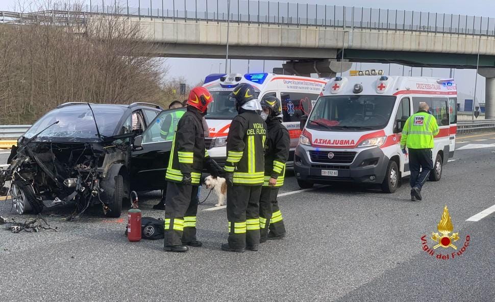 L'impatto ha coinvolto due vetture: una persona è stata elitrasportata all'ospedale di Novara e due in quello di Vercelli.