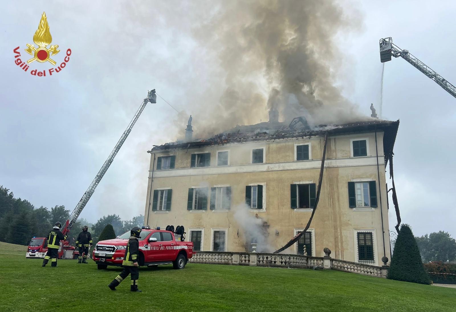 Un incendio di vaste proporzioni sta diffondendosi in queste ore nella storica Villa Lomellina Marchese Raggio a Gavi, sulla strada che collega Gavi a Novi Ligure.