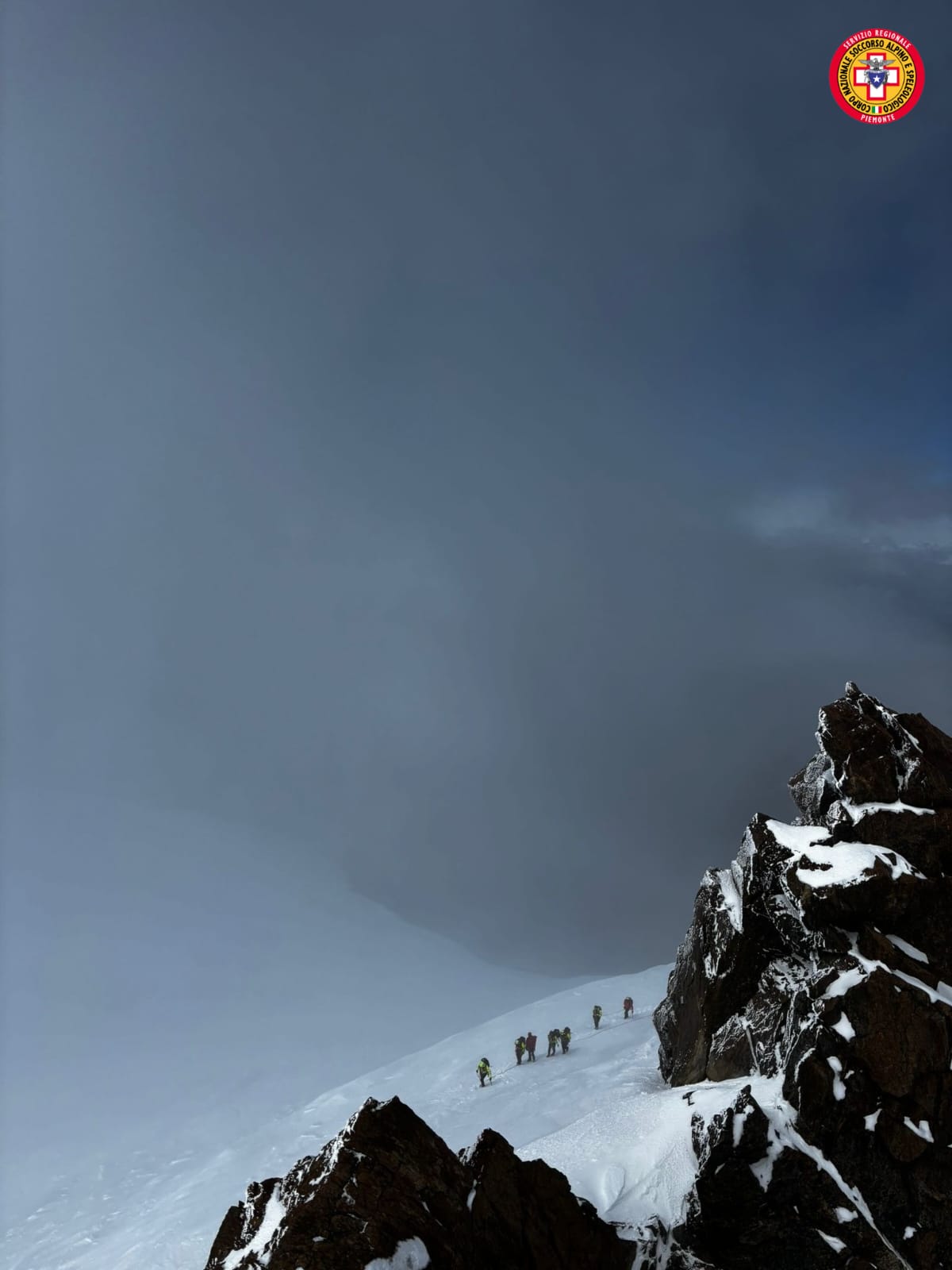 Questa mattina rimanevano condizioni di nevischio e nuvolosità che non hanno consentito al Servizio Regionale di Elisoccorso di Azienda Zero Piemonte di avvicinarsi ai malcapitati, ma 4 tecnici del Soccorso Alpino e Speleologico Piemontese sono stati sbarcati sulla cresta più in basso dove hanno iniziato una progressione via terra lungo il percorso che presenta difficoltà tecniche elevate in condizioni ambientali proibitive.