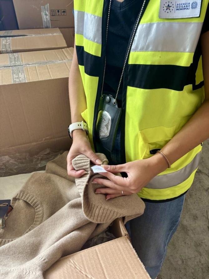 "In seguito alla segnalazione di “anomalia” del Circuito Doganale di Controllo, i funzionari Adm (Agenzia dogane e monopoli) hanno avviato una verifica incrociando i dati presenti nella documentazione commerciale con le informazioni disponibili nelle banche dati in uso all’Agenzia e, infine, con il riscontro fisico della merce - viene spiegato - Nel corso della verifica della merce, proveniente dalla Tunisia e costituita da capi di abbigliamento, è stata accertata la presenza di false e fallaci indicazioni in merito all’origine e al produttore degli articoli, senza nessuna indicazione recante l’origine extra-UE. In alcune etichette era riportata la falsa indicazione ‘Made in Italy’, altre riproducevano, accanto al marchio, il nome di località italiane (Roma, Firenze, Viareggio, Bologna-Italy, Genova, Milano), diciture quali ‘Designed in Italy’, ‘Italian experience’, ‘Italian Style’ o, ancora, l’immagine di bandiere di Italia, Stati Uniti e Giappone".