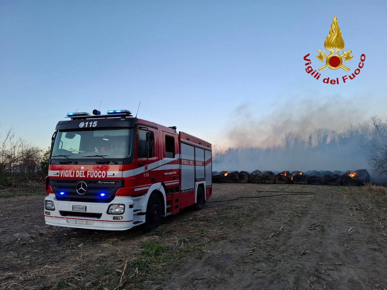 Le fiamme stavano lambendo numerose rotoballe di fieno sistemate su un terreno. Difficili le operazioni di spegnimento, a causa del forte vento che persiste già da diversi giorni. In supporto anche squadra dal distaccamento volontario di Romagnano.