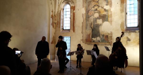La presentazione è stata accompagnata dalla musica di Guido Rimonda, che ha suonato con alcuni elementi della Camerata Ducale. La cappella è uno dei luoghi della città scelti per le visite delle Giornate di primavera del Fai.