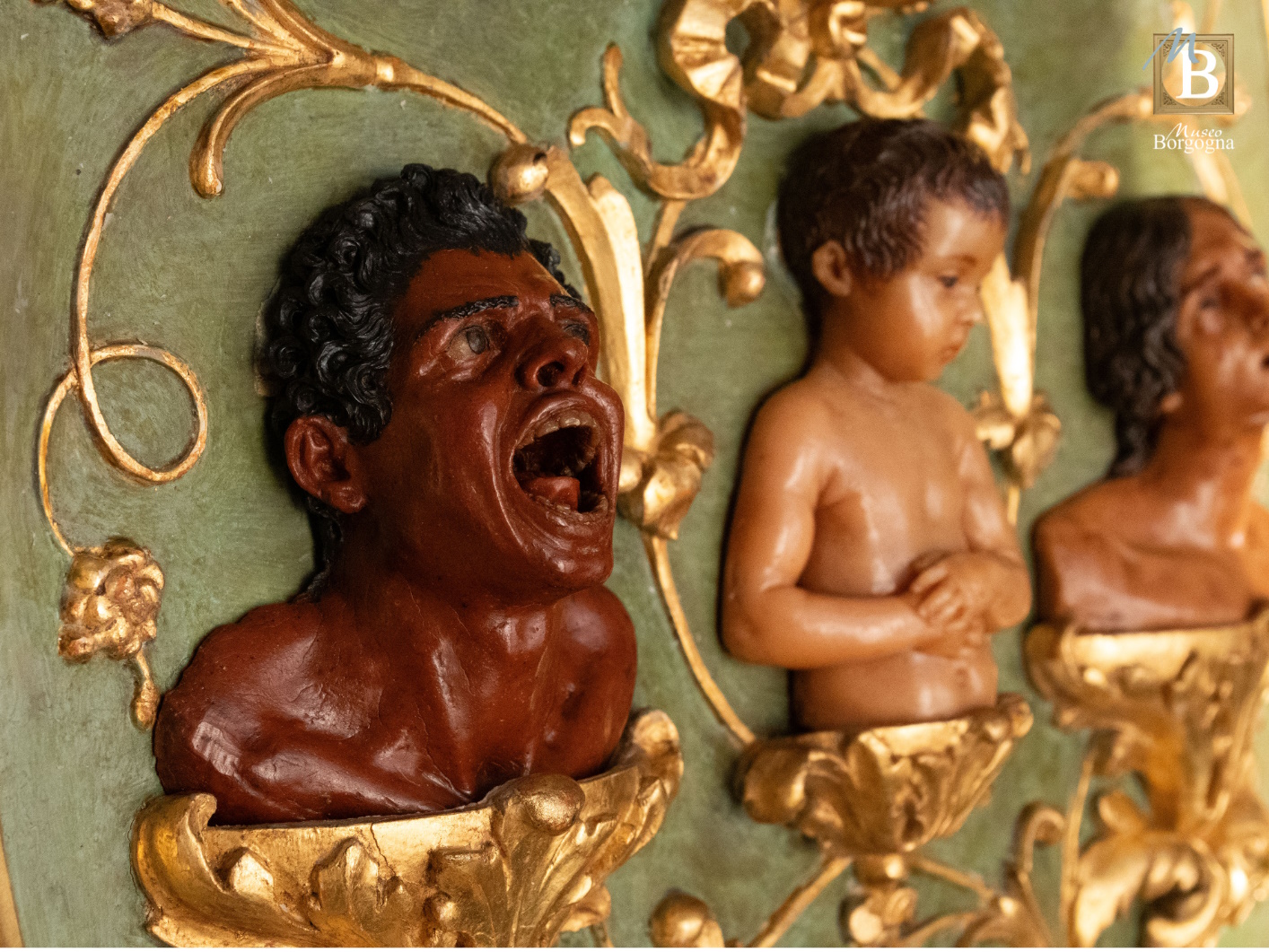 "I Novissimi" vennero acquistati da Antonio Borgogna nel 1899 all'asta del Duca d'Aosta. La teca e le cere sono state restaurate con il sostegno degli organizzatori della mostra.