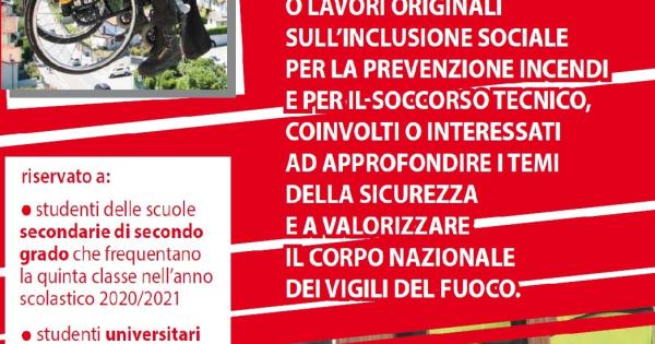 Lo scopo è quello di valorizzare il Corpo Nazionale dei Vigili del Fuoco quale primaria struttura pubblica operante sui temi della sicurezza e del soccorso inclusivo: possono partecipare al concorso gli studenti che siano stati coinvolti in percorsi di studio e/o sperimentazione su tali aspetti. L’inclusione sociale si riferisce a tutte le categorie di persone che possono avere specifiche necessità in situazioni di emergenza e, pertanto, necessitano di azioni mirate alla loro tutela (persone con disabilità, ospiti di asili nido oppure di centri per anziani).