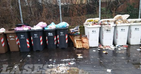 Ad esempio in via Chicco 19 (foto grande). Commenta il lettore che ha inviato la foto: "È ormai da prima di Natale che non passa più nessuno per la raccolta rifiuti, uno schifo che paghiamo lautamente con la Tari. Un sentito ringraziamento a chi dovrebbe fare e non fa...".