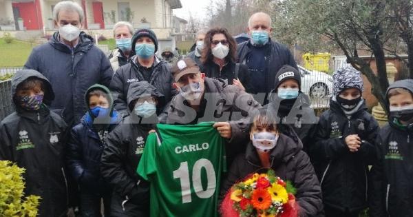 Poi, i piccoli calciatori della categoria “primi calci” hanno tenuto a donare a Carlo Olmo la maglietta numero 10 della loro squadra “Lupetti bianchi”, chiamata così proprio a suo nome e nata su idea dell’allenatore Michele Pancallo.