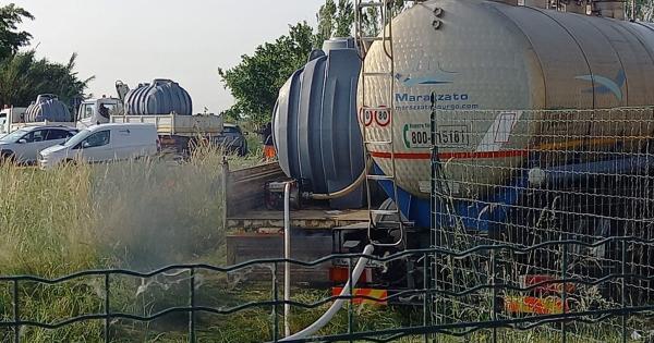 Le autobotti che riforniscono la rete idrica di Tricerro