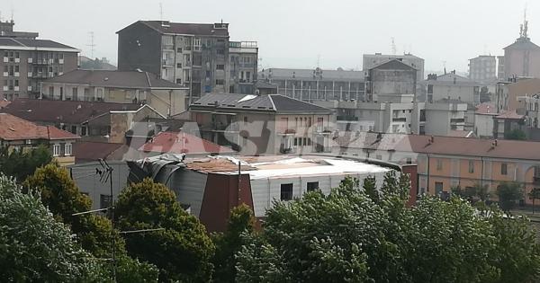 Il forte vento che ha interessato in questi ultimi minuti Vercelli ha scoperchiato la copertura della palestra Bertinetti: nella foto si nota il tetto della struttura volato via dopo le violente folate che hanno colpito il capoluogo. Nel crollo è rimasta coinvolta anche un'autovettura con all'interno una persona, che fortunatamente non ha riportato ferite.