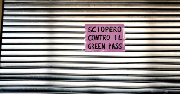 Serranda abbassata in via Po: sciopero contro il green pass.