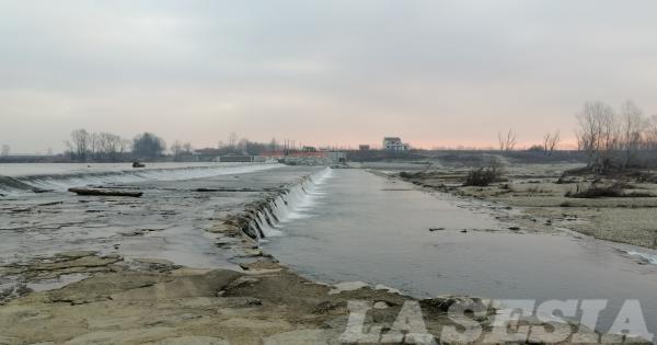 Il fiume Sesia a Palestro stamattina, sabato 12 febbraio