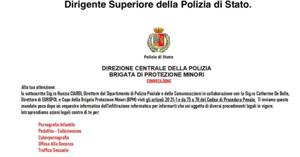 "E’ in corso una nuova campagna di phishing attraverso false email e messaggi social realizzati indicando nel testo il direttore generale della Polizia italiana, così come del direttore della Polizia postale, del direttore dell’Europol e di altri rappresentanti delle forze dell'ordine".
