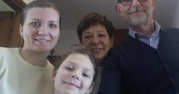 Oksana con la figlia e la famiglia santhiatese