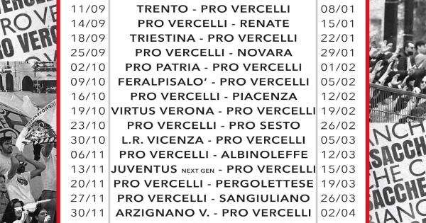 Il campionato delle bianche casacche proseguirà il 2 ottobre con la trasferta in casa della Pro Patria e domenica 9 ottobre in casa del Feralpi Salò. Il 16 ottobre arriverà a Vercelli il Piacenza, mercoledì 19 ottobre trasferta in casa della Virtus Verona, domenica 23 match casalingo contro la Pro Sesto. Si continua il 30 ottobre con la trasferta di Vicenza, il 6 novembre arriva l’Albinoleffe, mentre il 13 novembre altra sfida tutta piemontese in casa della Juventus Next Gen, il 20 ottobre si giocherà in casa contro Pergolettese e il 27 novembre di nuovo a Vercelli contro il Sangiuliano. Mercoledì 30 novembre trasferta in casa dell’Arzignano Valchiampo, il 4 dicembre arriverà al “Piola” il Pordenone, l’11 dicembre trasferta a Mantova, il 18 dicembre ultima d’andata in casa contro il Lecco.