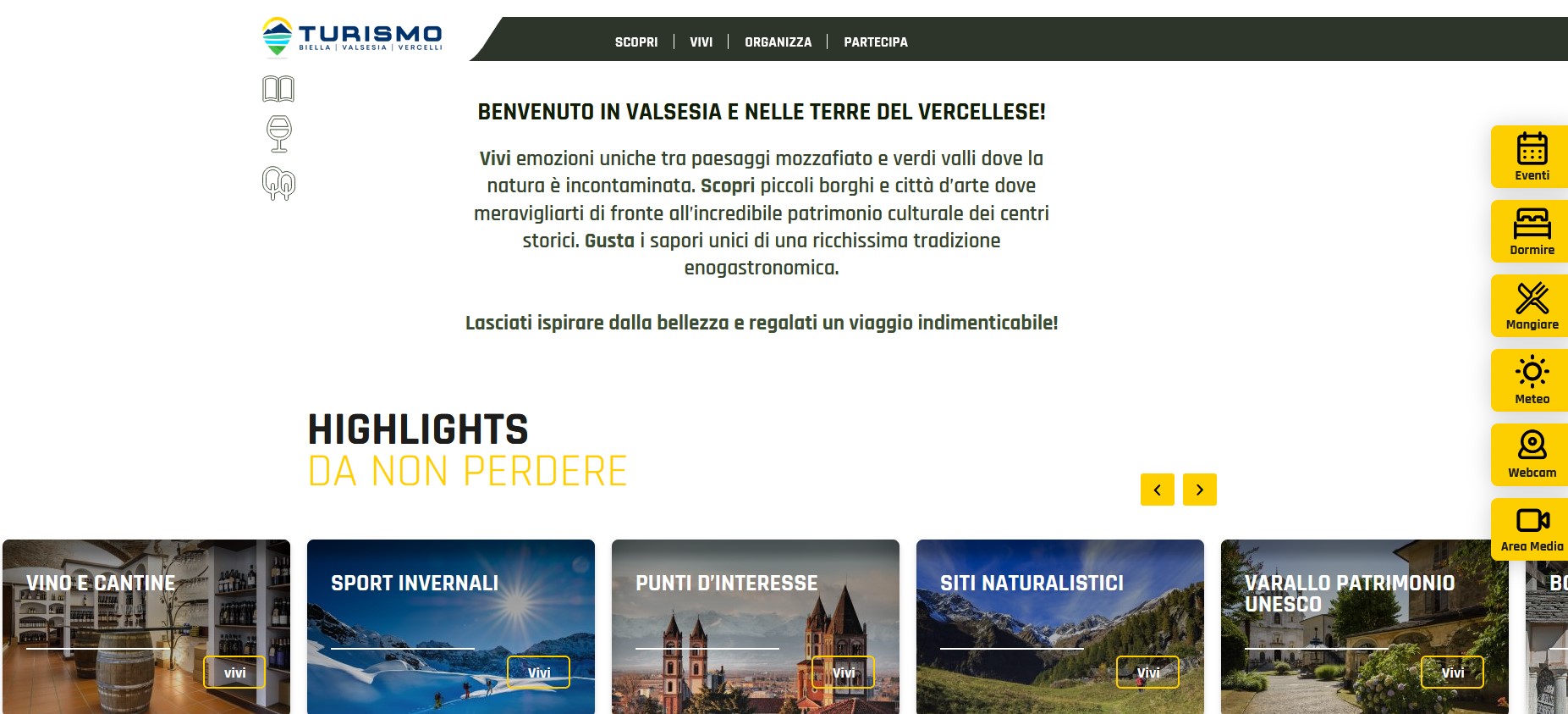 Il turismo è senza dubbio uno dei valori aggiunti della provincia di Vercelli e oggi più che mai è doveroso riconoscere che la promozione turistica delle eccellenze del territorio passa attraverso il web. Nell’ultimo anno, Atl Biella Valsesia Vercelli ha intrapreso un lungo lavoro creativo, con il supporto professionale di realtà esperte di Tourism Technology e Advertising, che si è concluso nel mese di dicembre 2022 con il lancio del nuovo portale turistico della Valsesia e del Vercellese. Il sito, online da martedì 13 dicembre su https://visitvalsesiavercelli.it/ è un portale dall’impostazione moderna e accattivante che presenta una nuova grafica, una notevole implementazione dei contenuti, un comparto video e foto completamente rinnovato e fornisce all’utente una user experience semplice, efficiente e di alto livello sia da desktop che da mobile.