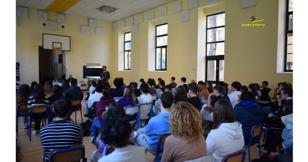 Inoltre, nel solco di un’iniziativa avviata il 4 novembre scorso in occasione della celebrazione della Giornata delle Forze Armate, è stata completata la sinergia tra il Comando Provinciale e l’Istituzione Scolastica, impegnata nel progetto multidisciplinare di educazione civica “Fare impresa nel rispetto della legalità e sul contrasto alla corruzione e alla contraffazione nel settore agro-alimentare”. L’Ufficiale ha posto l’accento sull’importanza di perseguire i valori della legalità economico-finanziaria e della leale concorrenza sui mercati e sui pericoli e i gravi danni causati allo sviluppo sociale ed economico del Paese dalla corruzione, dalla contraffazione dei prodotti e delle eccellenze del Made in Italy, dalla consumazione di gravi frodi fiscali, dall’agro-pirateria fino allo sfruttamento del lavoro e dalla distrazione di fondi pubblici e come le attività istituzionali della Guardia di Finanza a contrasto dell’illegalità salvaguardino il Cittadino e coloro che “fanno impresa” rispettando le leggi. "Gli studenti hanno manifestato il proprio interesse formulando domande volte a “conoscere meglio” la Guardia di Finanza, sulle prospettive di entrare a far parte del Corpo e sul profondo significato di indossare le Fiamme Gialle, simbolo del patrimonio tradizionale, etico e di valori che anima ogni Finanziere nella quotidiana azione di servizio", fanno sapere dal Comando.