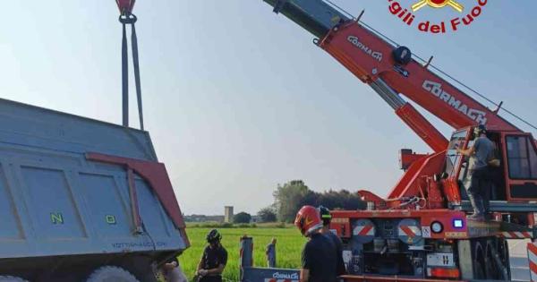 La viabilità sulla Crescentino-Lamporo è rimasta temporaneamente chiusa fino alla rimozione del mezzo.