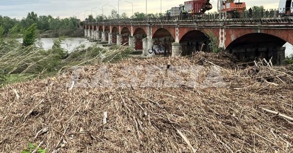 Il materiale legnoso accumulato dopo la piena del 16-17 aprile