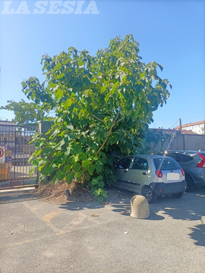 E' la segnalazione di un lettore, che documenta l'"invasione" del verde incolto che ormai ha invaso stalli, muri e marciapiedi.