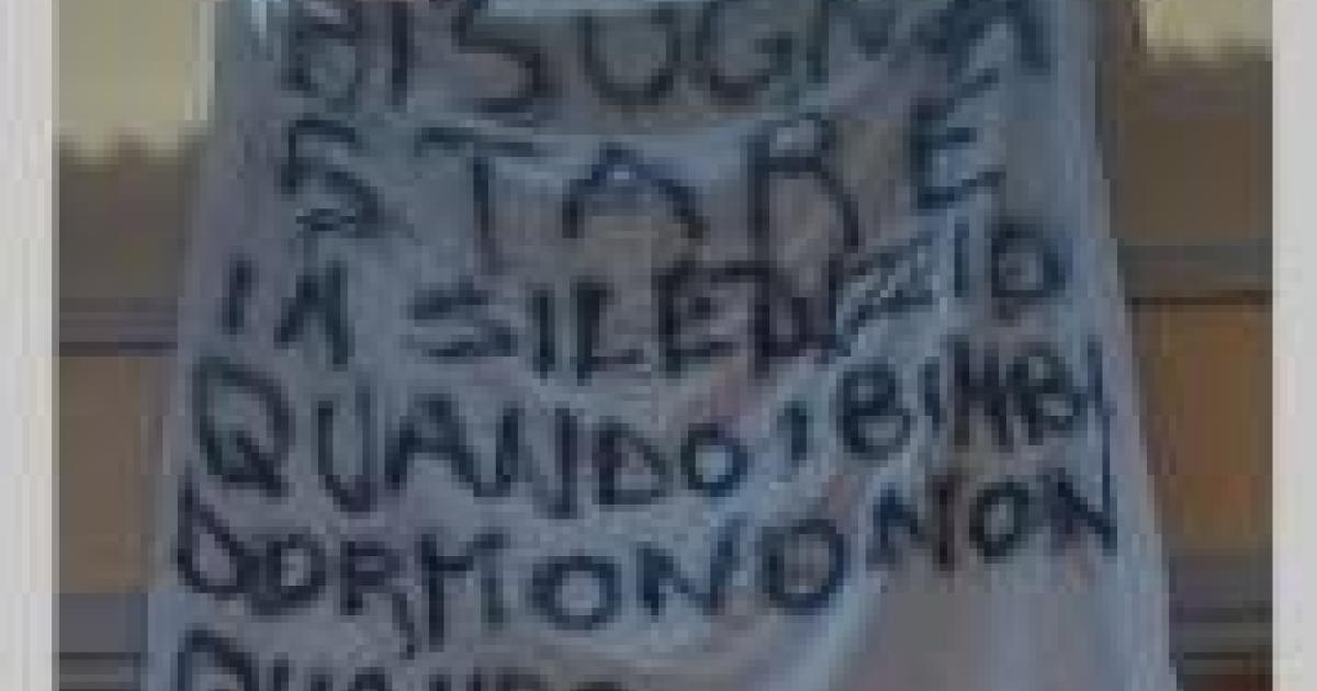 "Siamo venuti a conoscenza di un intervento della Polizia municipale che, in data 30 luglio, ha imposto ad un cittadino di rimuovere dalla finestra della propria abitazione uno striscione riportante la scritta: “BISOGNA STARE IN SILENZIO QUANDO I BAMBINI DORMONO E NON QUANDO MUOIONO” con la presunta approssimativa motivazione di lesione del decoro urbano - scrivono in un'interrogazione i consiglieri comunali - Non risultano essersi verificati in precedenza episodi di analoghi provvedimenti in occasione delle più svariate manifestazioni di espressione di pensiero attraverso l’esposizione di bandiere, drappi, striscioni ecc. dalla facciata dell’abitazione e il testo dello striscione in questione non contiene espressioni offensive nè lesive del pudore ma, al contrario, ha un alto valore morale nei confronti di un dramma che commuove tutto il mondo".