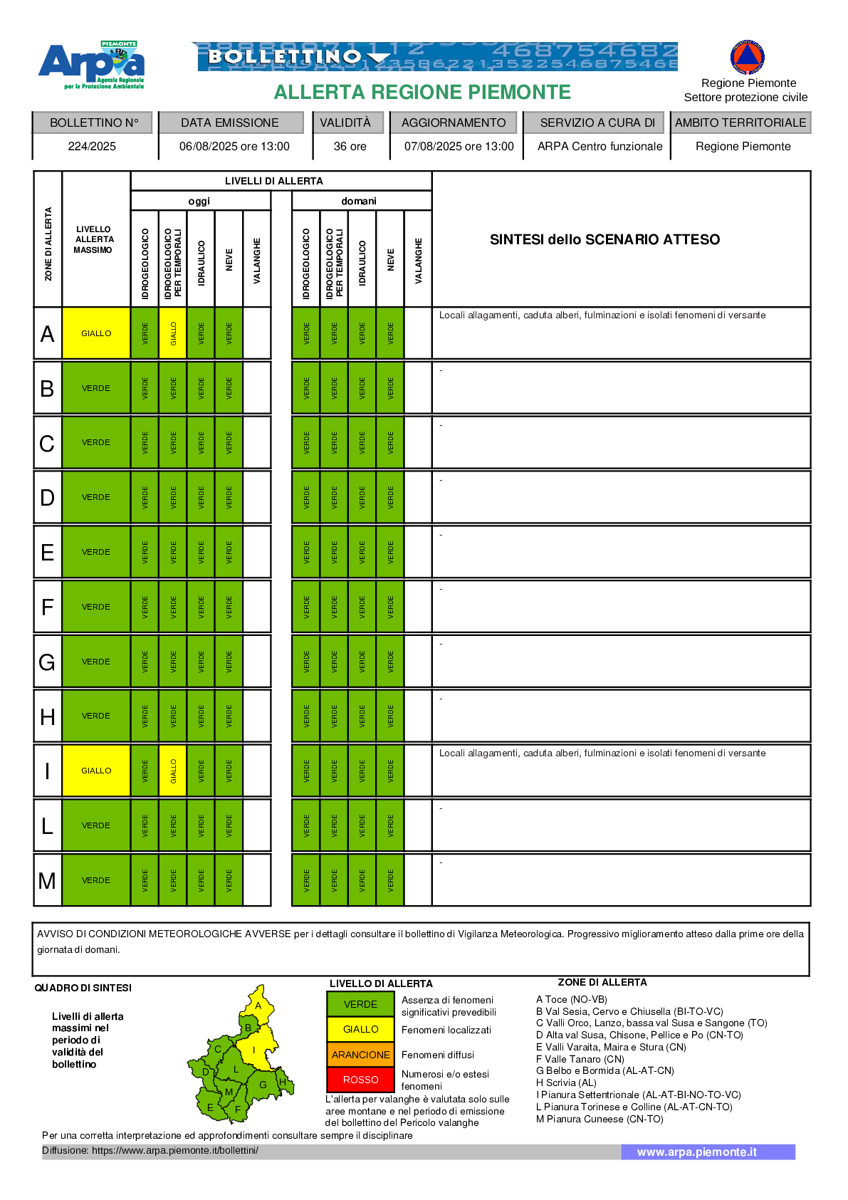 "Domani, giovedì 7 agosto, dopo una prima parte di giornata durante la quale i flussi umidi orientali manterranno cieli in gran parte nuvolosi specie sui settori occidentali e settentrionali, dal pomeriggio la decisa rimonta di un campo di alta pressione favorirà il progressivo passaggio a condizioni più stabili e soleggiate. Da venerdì e per tutto il fine settimana condizioni in gran parte stabili e soleggiate con temperature in generale aumento e quota dello zero termico che si porterà sui 4800-5000 m tra giovedì sera e venerdì, per poi mantenersi intorno ai 4600-4800 m nel fine settimana".