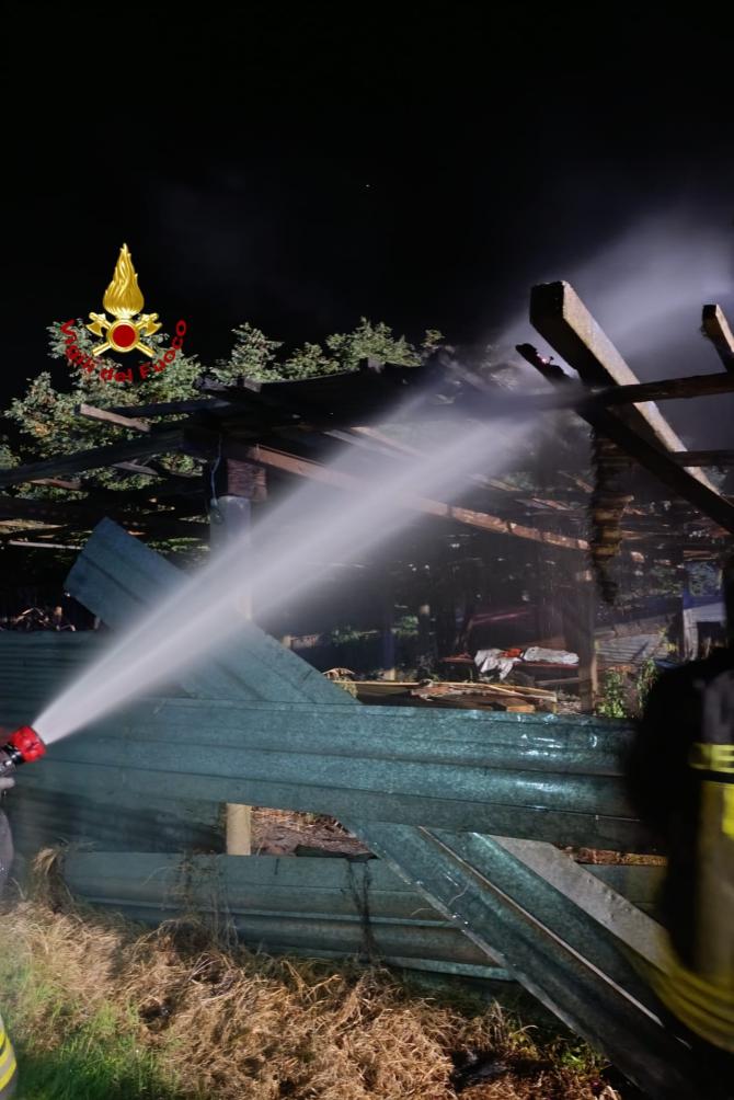 Capanno in balia delle fiamme