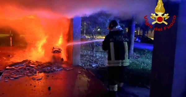 Le fiamme hanno interessato uno scooter parcheggiato sotto il portico di un palazzo: tutti gli appartamenti sono stati evacuati perché sono stati invasi dal fumo dopo che i vigili del fuoco hanno messo in sicurezza l'area; intervenuti anche i carabinieri.