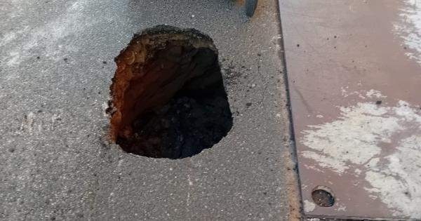 Il profondo buco stradale si è aperto nelle vicinanze di un altro già segnalato dal nostro giornale, in una zona dove l'asfalto era già sconnesso e che è stato provvisoriamente tamponato.