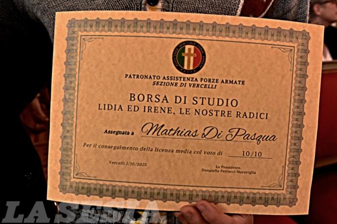 La sezione Pasfa di Vercelli ha festeggiato i 110 anni del sodalizio con l’assegnazione di una borsa di studio, dedicata ad un figlio di militari in servizio a Vercelli, intitolata a due socie fondatrici Lidia Tesio Bagnasco e ad Irene Zaccaria Cellati.