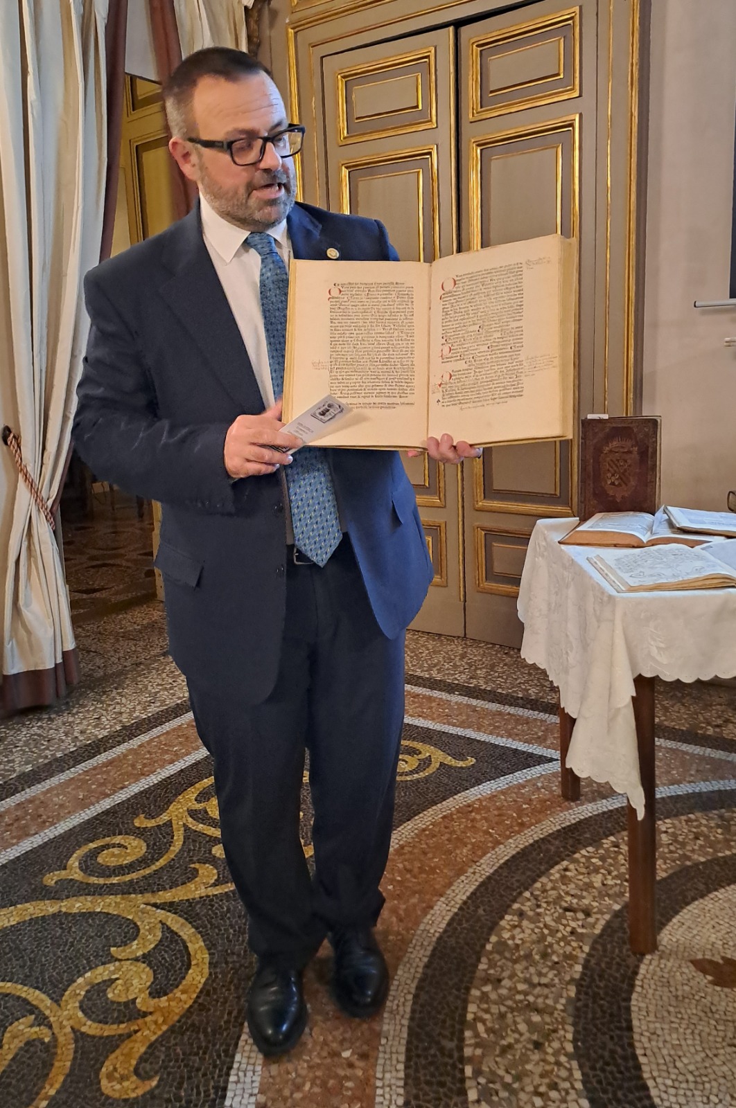 Macciò, seguito dall’attenzione dei presenti, ha illustrato gli aspetti più interessanti dell’evoluzione del libro inteso quale oggetto, partendo dalla storia della carta e dall’uso dei caratteri mobili. Ha raccontato alcuni passaggi fondamentali dell’evoluzione della stampa oltre ad alcune curiosità, come il genio del grande stampatore veneziano Aldo Manunzio che diede vita ai primi libri tascabili, le famose edizioni “Aldine”. Un percorso tecnico arricchito da una parte “emozionale” in cui il medico ha parlato di alcuni dei suoi volumi preferiti, tra cui la preziosa prima edizione intitolata "Het Achterhuis" (Il retrocasa), pubblicata nei Paesi Bassi nel 1947, de “Il diario di Anna Frank”, la cui stampa fu voluta da Otto Frank padre di Anna per ricordare la figlia scomparsa tragicamente nel campo di concentramento di Bergen-Belsen in Germania.