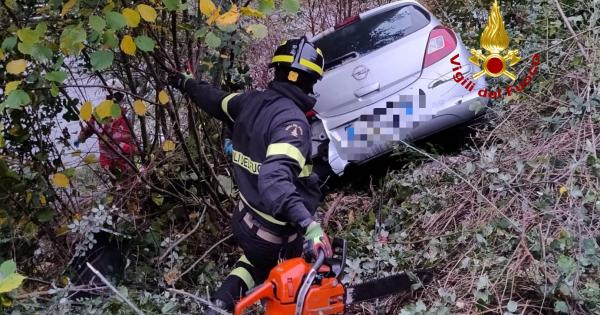 Infatti l'auto, guidata da una persona anziana, è finita in un dirupo tra le rocce, rendendo difficile le operazioni di estrazione dell'occupante della vettura.