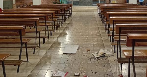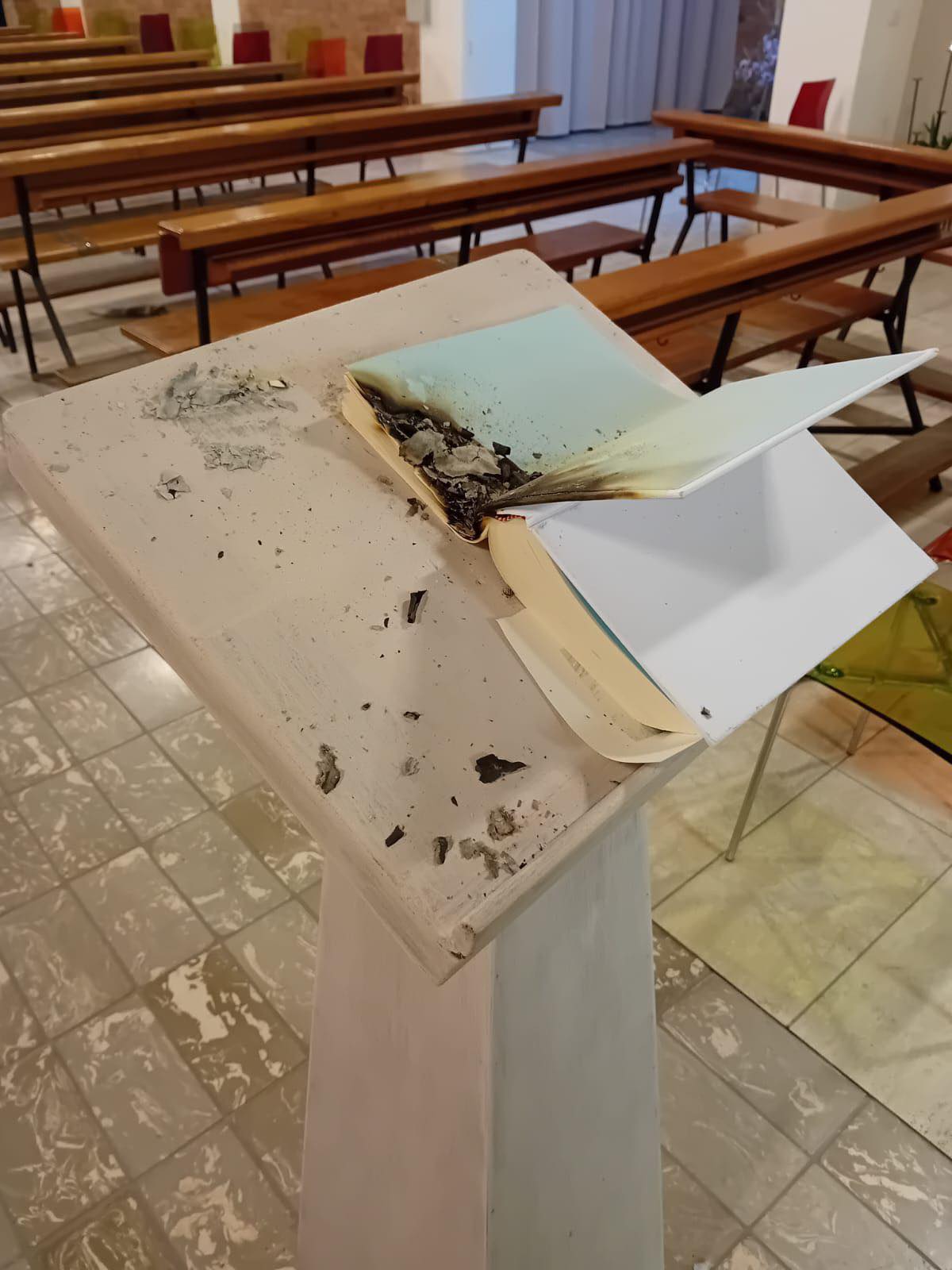I vandali hanno bruciato un testo sacro e lasciato sporcizia e devastazione nella chiesa.