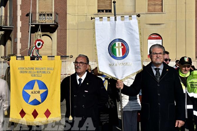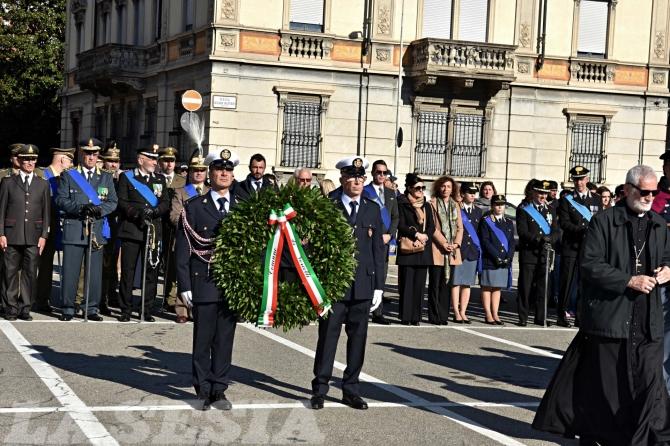 Dopo la funzione religiosa, il corteo ha raggiunto piazza Cesare Battisti per il tradizionale momento degli Onori ai caduti di tutte le guerre con la deposizione delle corone d’alloro. Come di consueto, i Labari delle associazioni combattentistiche e d’arma hanno fatto da cornice alla cerimonia alla quale hanno partecipato anche alcune classi degli istituti scolastici cittadini con i loro insegnanti. In piazza erano presenti il prefetto Lucio Parente, il sindaco Roberto Scheda, il presidente della Provincia Davide Gilardino e diversi rappresentanti delle istituzioni politiche locali, regionali e nazionali. Durante la cerimonia sono stati letti i messaggi del Presidente della Repubblica e quello del Ministro della Difesa, Guido Crosetto.