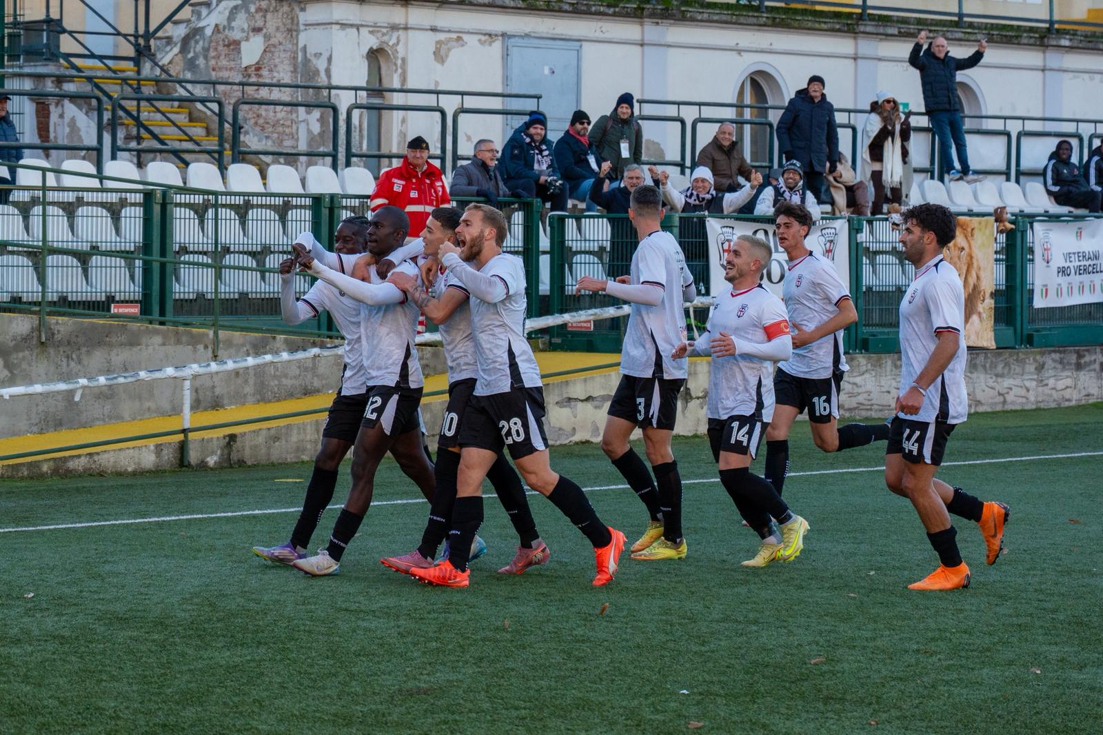 La Pro Vercelli reagisce immediatamente e prova a riprendere il controllo della gara con un’azione corale che sfuma sul fondo, dopo un ottimo cross non agganciato per un soffio da Asane Sow.