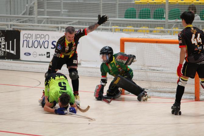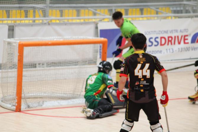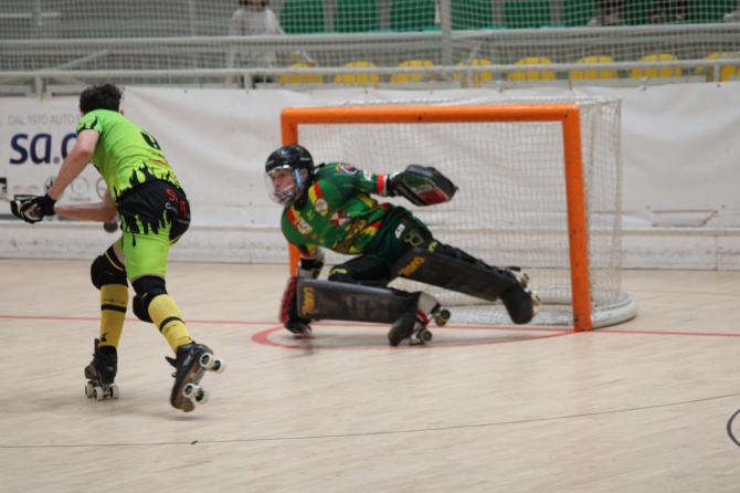 Montivero firma la quinta rete al 34’. Nel frattempo il Roller Lodi continua nelle proteste, rimedia cartellini, fino all’espulsione dell’allenatore Rossetti e poi del portiere Coppola. Chiavaro è monumentale nel respingere il tiro diretto di Mattia Gori al 16’; e sul ribaltamento di fronte, Andrea Gori spara il missile del 6 a 0.