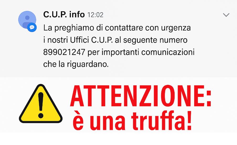 Sono in circolazione falsi messaggi SMS apparentemente inviati dal C.U.P. (Centro Unico di Prenotazione), che rappresentano un tentativo di truffa.