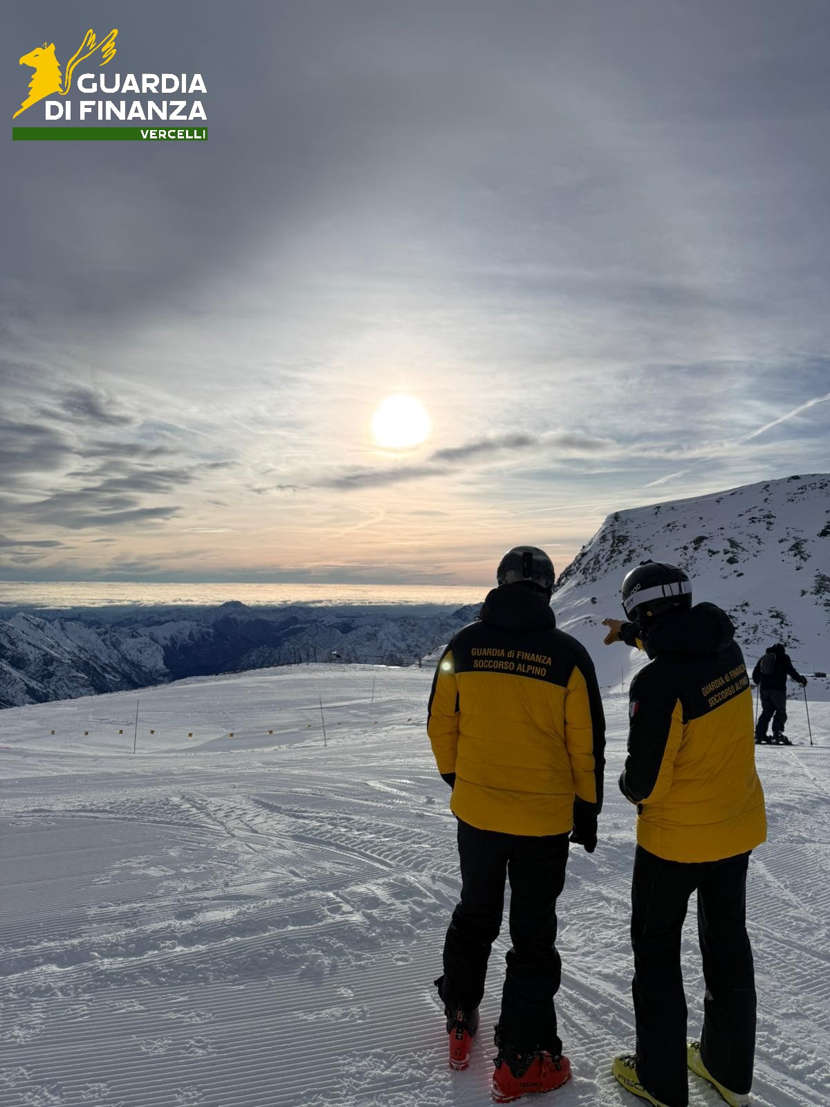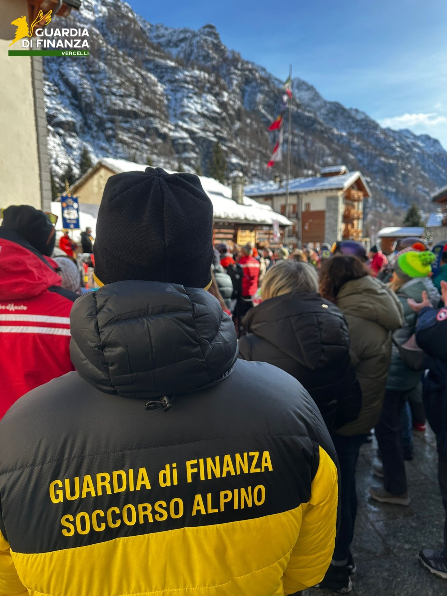 I finanzieri del S.A.G.F. (Soccorso alpino Guardia di finanza) di Alagna Valsesia hanno accompagnato il simbolo delle olimpiadi lungo le piste da sci fino all’abitato del comune di Gressoney- La Trinitè, unitamente ai colleghi della Stazione S.A.G.F. di Cervinia, effettuando supporto e servizio di sicurezza alla staffetta olimpica e ai partecipanti al particolare evento.
