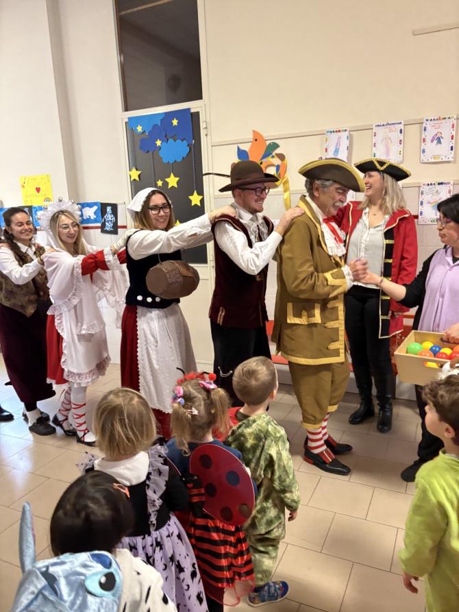 Per l’occasione, la scuola ha organizzato una serie di attività pensate per far vivere ai bambini un’esperienza completa e divertente. Le maschere, con grande simpatia e disponibilità, hanno partecipato ai momenti di gioco e animazione insieme ai piccoli, diventando parte attiva della festa. Tra canti, balli, musica e risate, la mattinata è trascorsa in un clima sereno e festoso, in cui tutti si sono sentiti protagonisti.