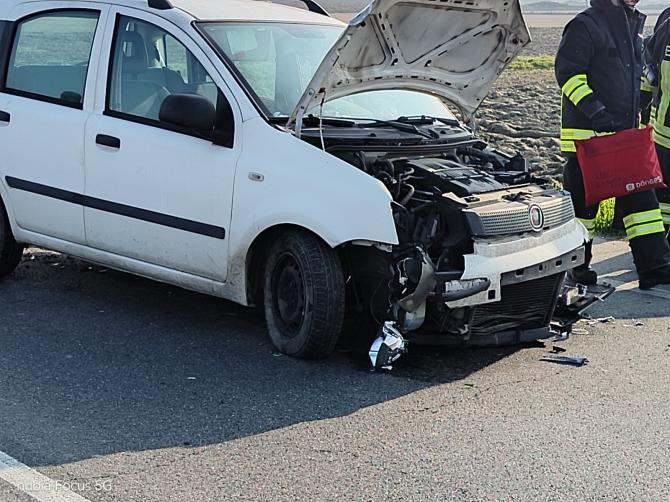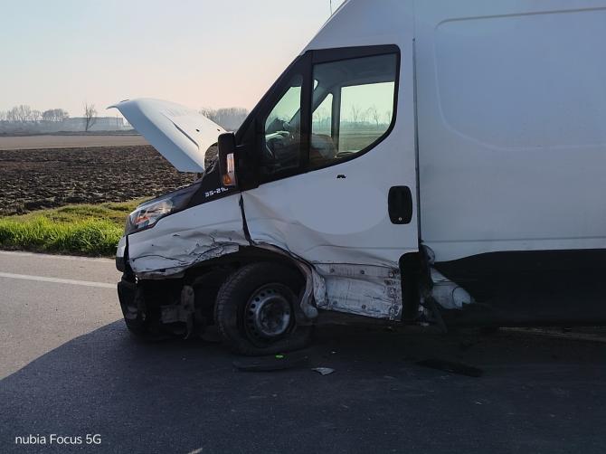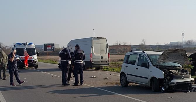 Una Panda guidata da una donna si è scontrata frontalmente con un furgone nei pressi della rotatoria del centro commerciale.