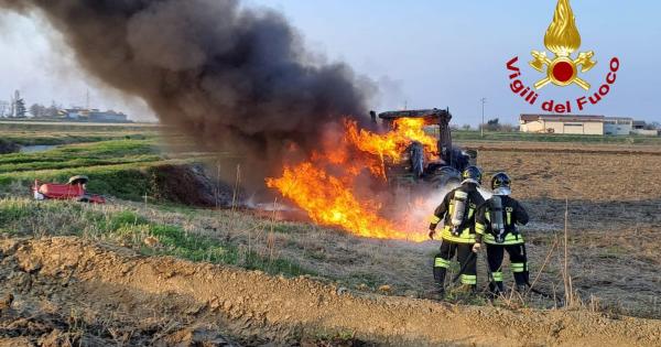L' intervento è valso alla completa estinzione del trattore, trovato completamente avvolto dalle fiamme e alla messa in sicurezza dell' area circostante.