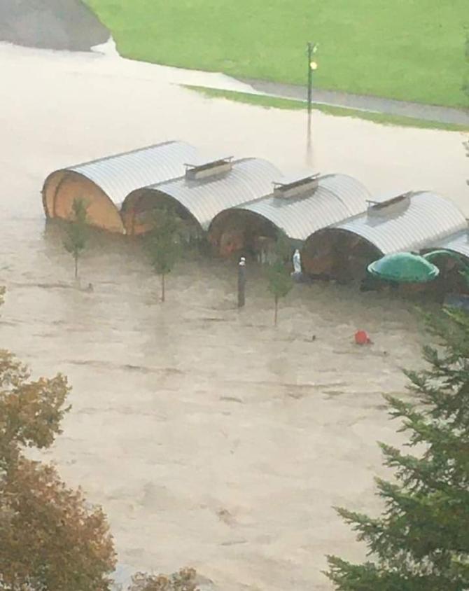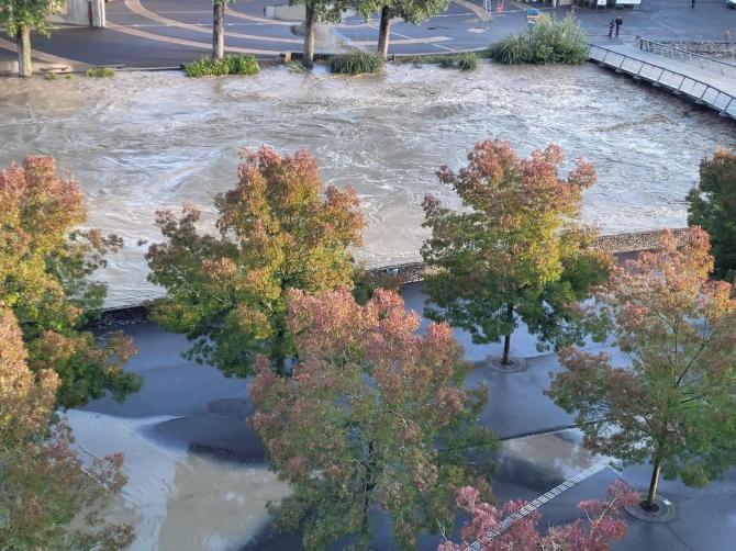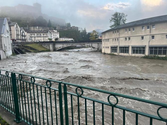 Maltempo a Lourdes che ha portato all'esondazione del fiume Gave.