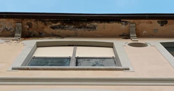 Il cornicione da dove si sono staccate porzioni di intonaco