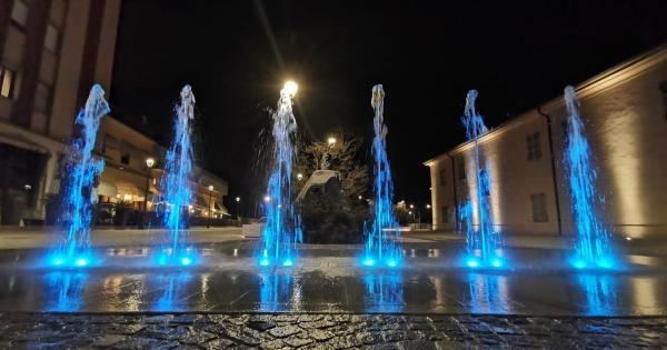 La fontana illuminata accesa in piazza Paolotti a Gattinara
