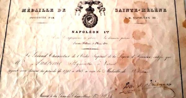 Un ritrovamento storico porta alla luce l’attestazione della consegna della medaglia di Sant’Elena al trinese Giacinto Andreone, al servizio di Napoleone tra il 1792 e il 1815.