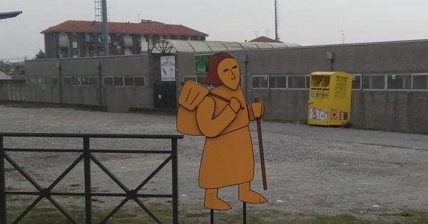 Una delle sagome del pellegrino presente sul territorio santhiatese