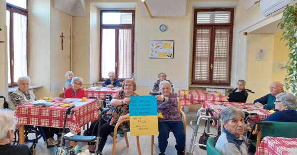 Crescentino: giochi di società, dolci e la bandiera della pace. Una Festa della donna celebrata con un gesto di vicinanza al popolo ucraino da parte delle ospiti della casa di riposo "Fondazione Santo Spirito Borla". Prima dei festeggiamenti gli anziani hanno infatti voluto dedicare un piccolo momento di riflessione e di preghiera per la popolazione colpita dal conflitto ea provata dalla sofferenza e dal terrore. Con l’aiuto dell'animatrice Federica gli ospiti, nel ricordo delle loro stesse sofferenze di tanti anni fa, hanno preparato ed esibito la bandiera ucraina con su scritto "Noi sappiamo cos’è la guerra e non cessiamo di pregare per la Pace, il bene più prezioso!".