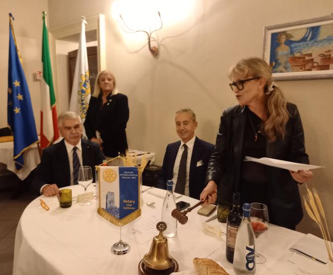 La Presidente del Rotary Club Gattinara, Silvia Domenicone, ha accolto i soci, salutato gli ospiti ed accolto ufficialmente la nuova socia, l’architetto Miranda Bocca, presentata dal socio rotariano Pietro Prosino. Miranda, che da ventotto anni ha uno studio professionale a Gattinara, ha sottolineato che è un onore essere accolti nel Rotary, ma anche una responsabilità: “Nel mio lavoro di architetto cerco ogni giorno di costruire spazi che rispettino l’ambiente, favoriscano l’armonia e mettano al centro il benessere delle persone. Credo che i principi di sensibilità, ascolto, bellezza consapevole siano profondamente affini allo spirito rotariano”.