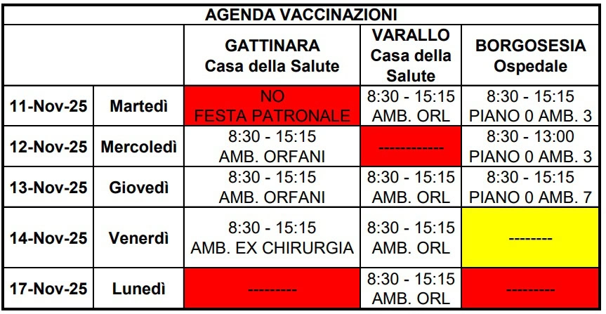 Per garantire la vaccinazione antinfluenzale ai pazienti attualmente privi del medico curante, l’Asl Vercelli ha attivato delle giornate vaccinali straordinarie tra l’11 e il 17 novembre, presso la Casa della Salute di Gattinara, la Casa della Salute di Varallo e l’ospedale di Borgosesia.