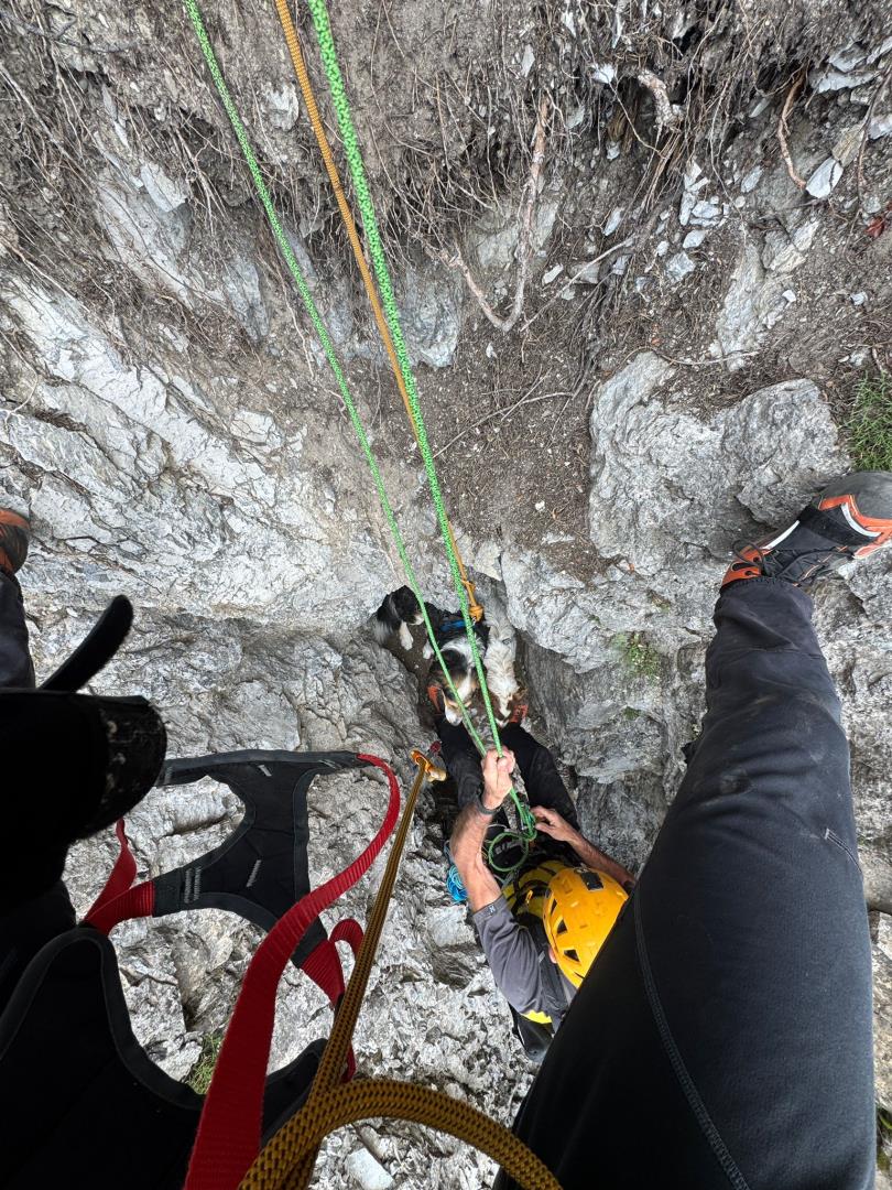 I soccorritori sono riusciti a raggiungere gli animali, molto spaventati ma fortunatamente illesi e, insieme alla loro proprietaria, trasportarli a valle.