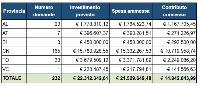 In particolare la provincia di Biella sarà finanziata con 3 interventi per 292.500 euro e Vercelli con 1 intervento per 141.566,63 euro. In queste province, dove è fortemente diffusa la risicoltura tradizionale per sommersione, la Regione Piemonte ha affiancato agli interventi irrigui aziendali altri specifici strumenti dedicati alla filiera risicola, come il bando Csr che sostiene interventi quali la riqualificazione di fontanili e zone umide agricole, il recupero di elementi del reticolo irriguo tradizionale, la creazione o il ripristino di habitat umidi e di aree tampone.